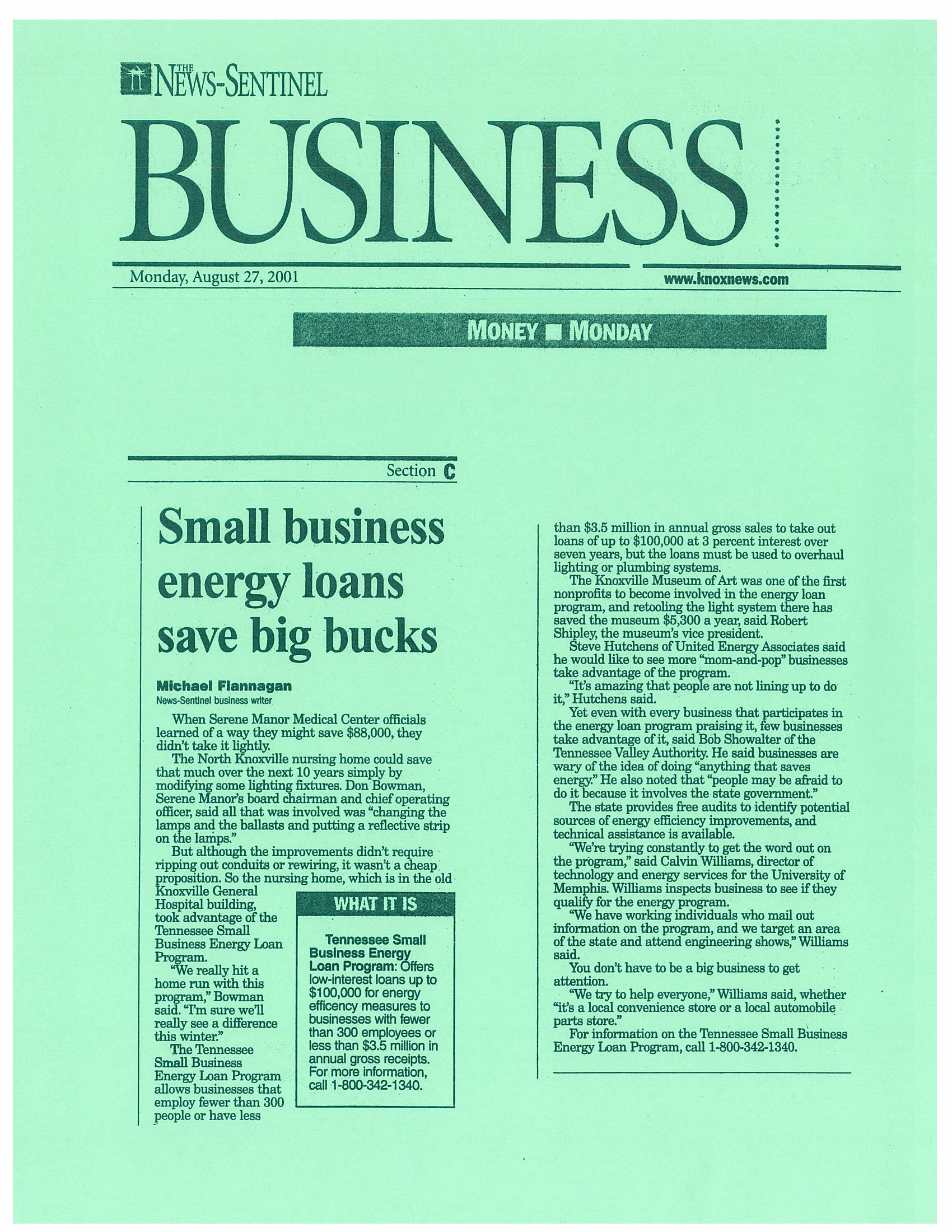 KNOXNEWS ARTICLE ON TENNESSEE LOAN PROGRAM